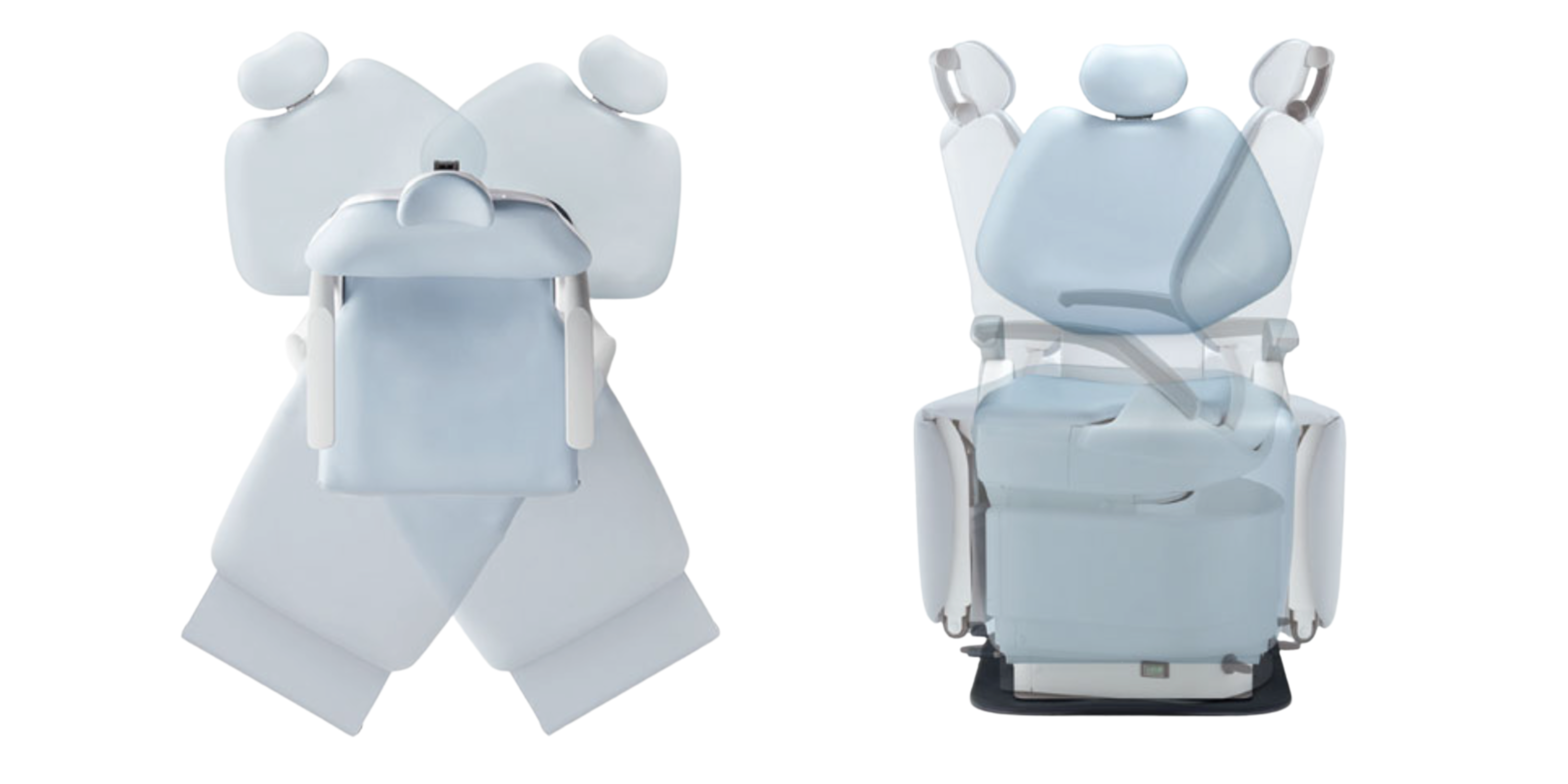 The hydraulic mechanism ensures smooth and quiet adjustment of all moving parts. The new twin-axis headrest system can be fine-tuned in increments of 7.5 degrees across a wide spectrum, plus there’s a synchronised axis backrest movement. This ensures all patients from small children to tall adults are comfortable.