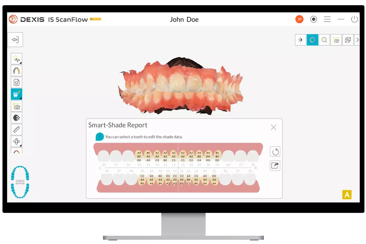 Automatically detects the shade of the enamel and provides an automated multi-layer shade report that identifies the ideal match.