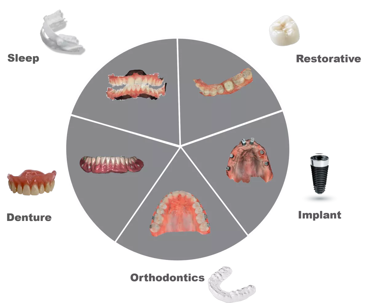 Revolutionary workflow within IS ScanFlow allows the user to navigate freely among different clinical indications including Restorative, Implant, Orthodontics, Denture and Sleep from a single scan.