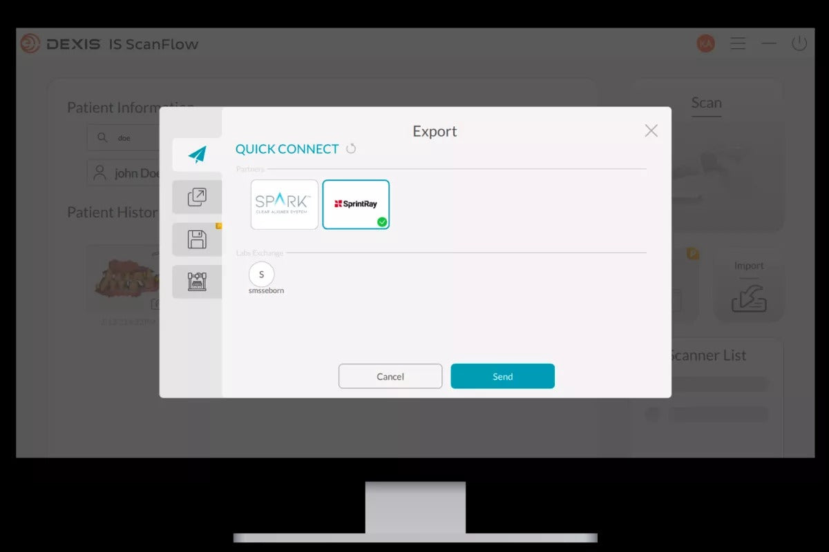Easily transfer your STL, PLY, OBJ, xOrder for DWOS, and Dentalproject for exocad files to your preferred lab or manufacturer via the Quick Connect partner network, with no proprietary restrictions.