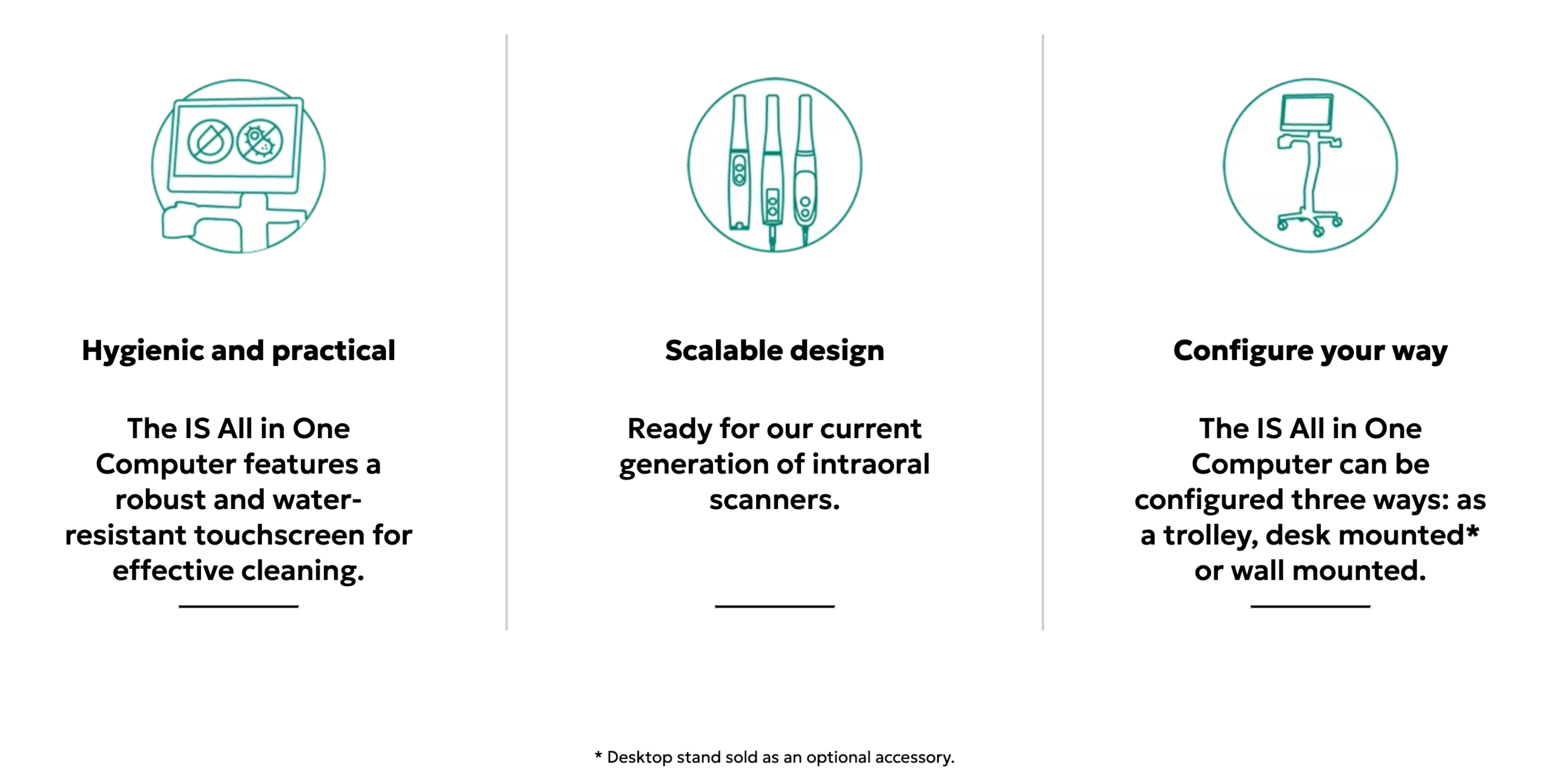 The sleek, flexible, ergonomic DEXIS IS Voyager trolley combined with the DEXIS IS All in One Computer provides convenient intraoral scanning and enhanced patient engagement—right at the chair.