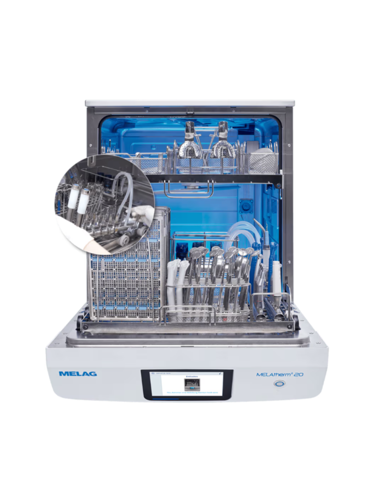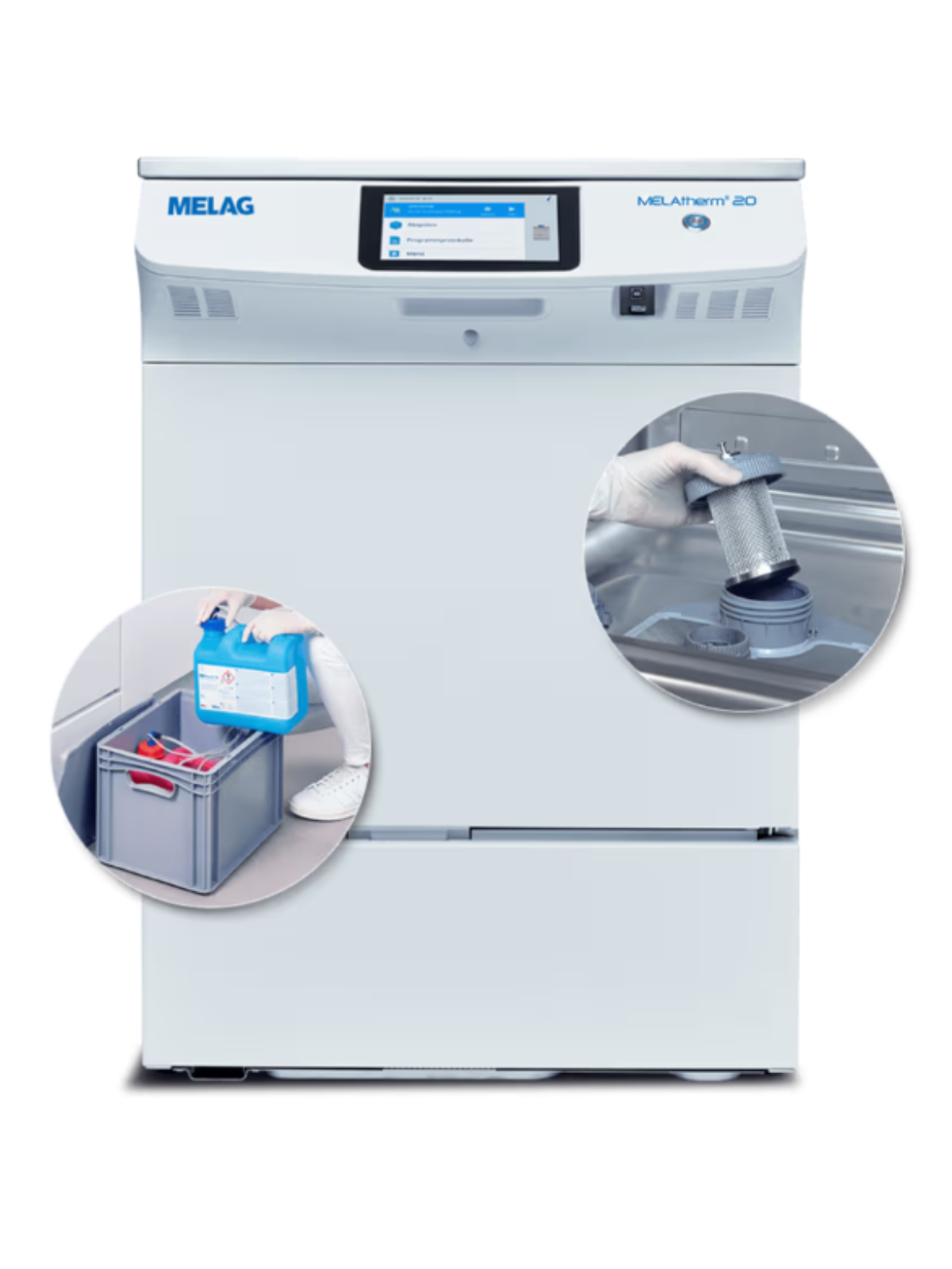 Whether with 230 V or 400 V, passiveDRY or activeDRY: MELAtherm 20 with a range of over 90 accessories adapts flexibly to your requirements and enables the efficient reprocessing of instruments for up to 90 patients per batch.
