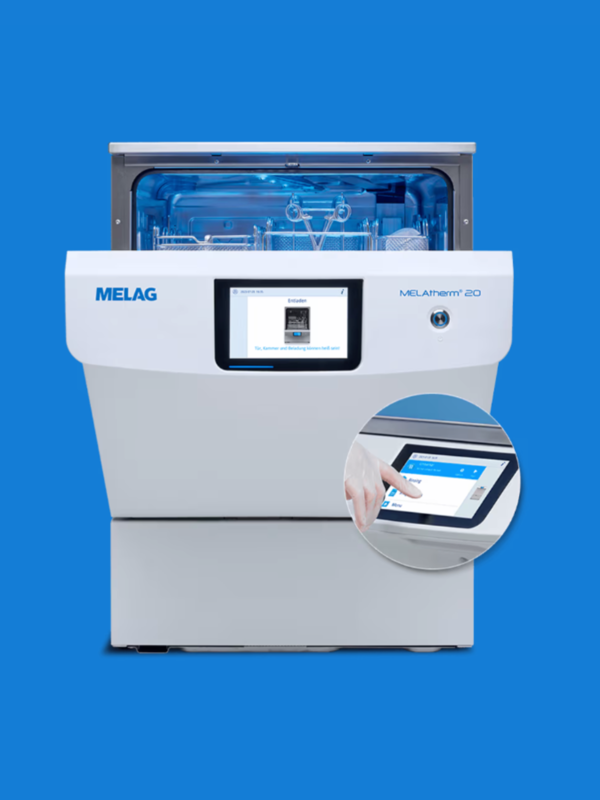 The large Smart-Touch Display on the device door makes operation as simple as using a smartphone – crisp, bright, and perfectly aligned with the MELAG system solution. From program selection to seamless documentation via USB or network: Everything is magically simple – simply magical.