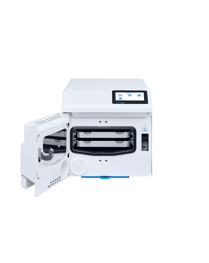 With a chamber volume of 5 litres, the stand-alone class B autoclave offers you enough space for the safe sterilisation of up to 2 kg of instruments on 2 trays.